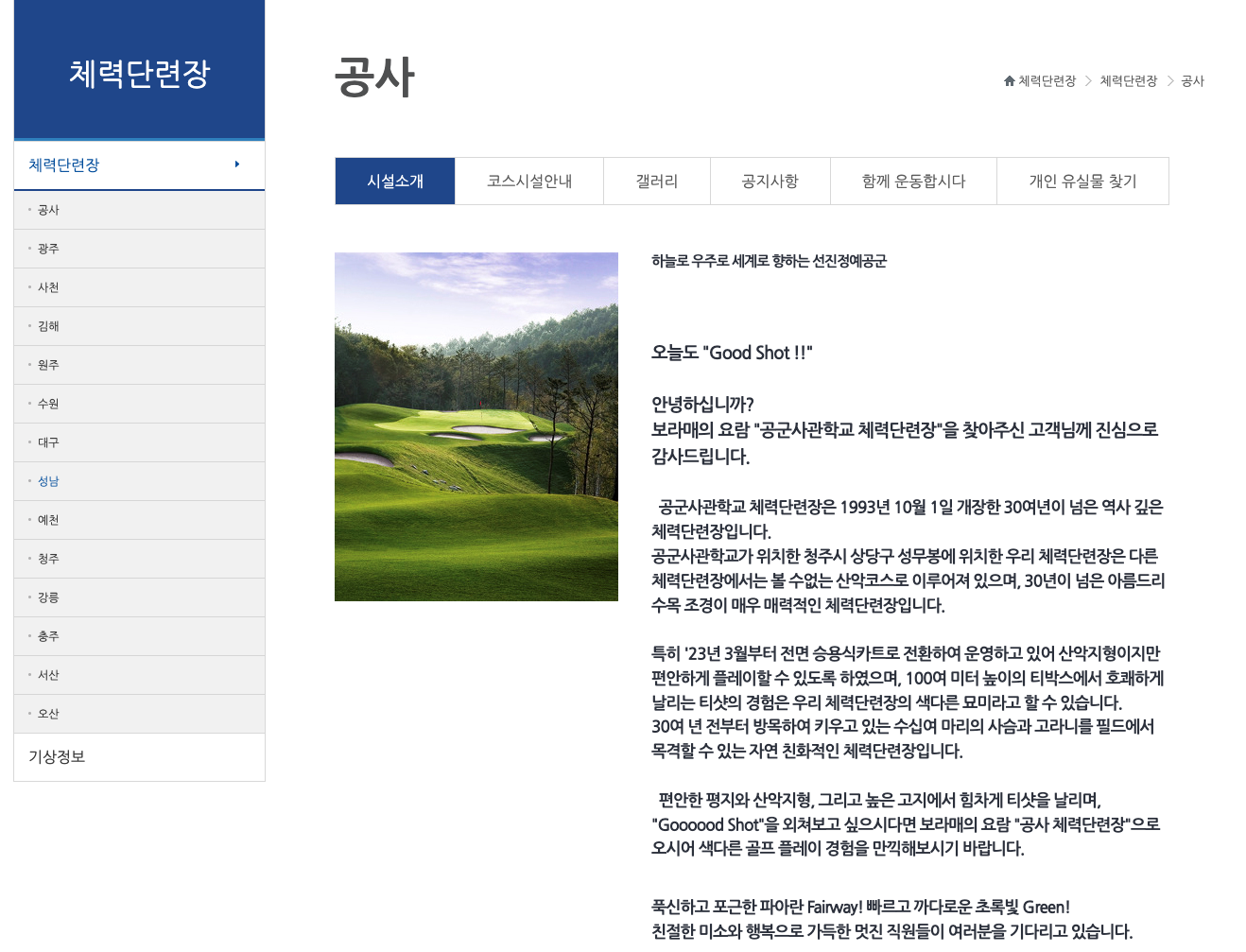 - 공군 체력단련장 중 일부는 그린나래호텔과 숙박 패키지를 운영해 골프+휴식을 동시에 즐길 수 있습니다.