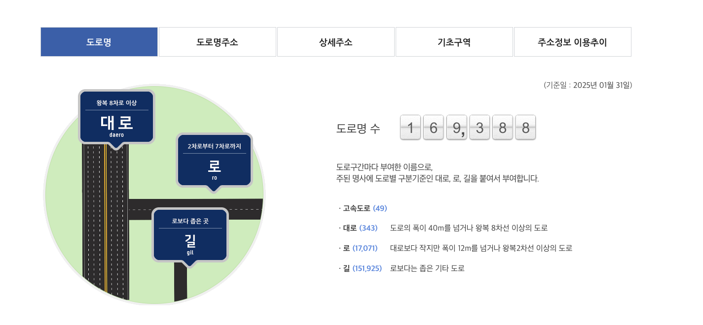 | 특징 | 오랫동안 사용된 전통적인 주소 체계 | 길을 중심으로 위치를 쉽게 파악할 수 있음 |