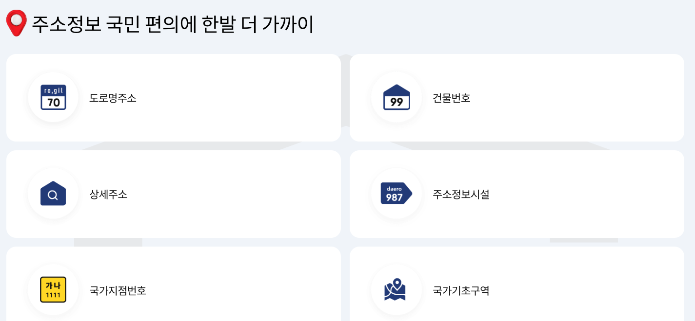 - 기업의 주소 관리 시스템: 고객 데이터가 구주소로 저장되어 있다면 최신 주소로 변환하여 데이터 관리 필요