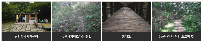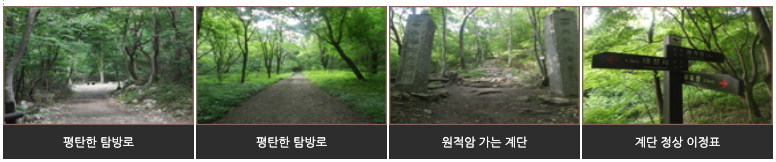 | 가족 단위로 가볍게 산책 가능한 코스가 있나요? | 네, 자연관찰로 코스와 전망대 코스는 아이와 함께 걷기에 좋습니다. |