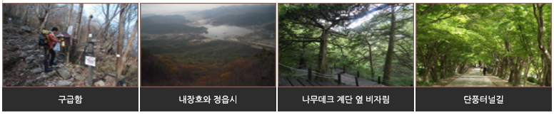등산 초보도 내장산 갈 수 있나요? | 네, 자연관찰로 코스나 전망대 코스는 경사가 완만하고 짧아 초보자도 충분히 가능합니다. |
