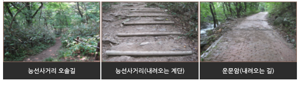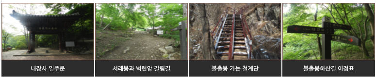 - 서래봉 → 불출봉 → 원적암 → 내장사 → 일주문 : 약 2시간 20분