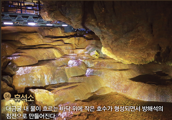 | 옥좌대 | 세계적으로 드문 형태의 석회암 생성물. 마치 왕의 보좌처럼 생김 |