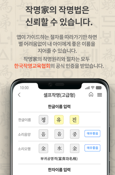 2. 작명家 – 이름의 원리까지 알려주는 학습형 어플