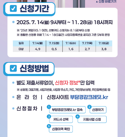 참고: 2025년 5월 2일 이후 ~ 7월 31일 사이에 개업한 분들도 8월 1일부터는 신청이 가능합니다.