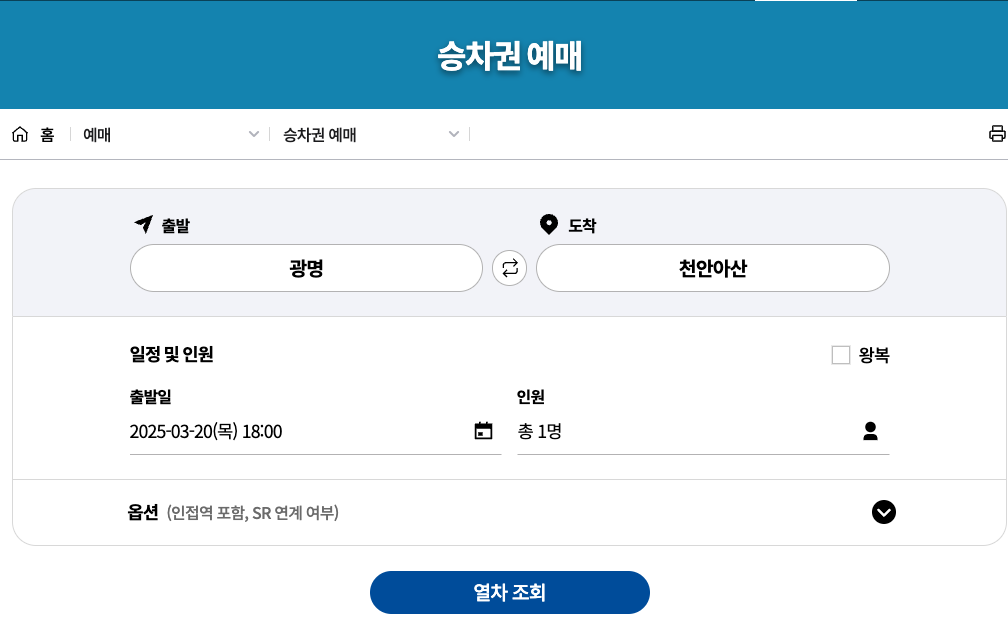 - ‘승차권 예매’ 메뉴 진입