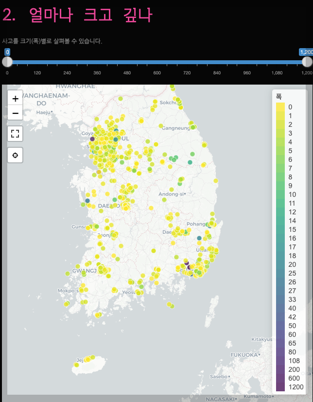 이 지도는 실제 발생했던 싱크홀 위치 정보를 수집하고 시각화한 웹페이지로, 누구나 주소를 검색해 자신이 사는 곳 주변에 과거에 싱크홀이 있었는지 확인할 수 있습니다.