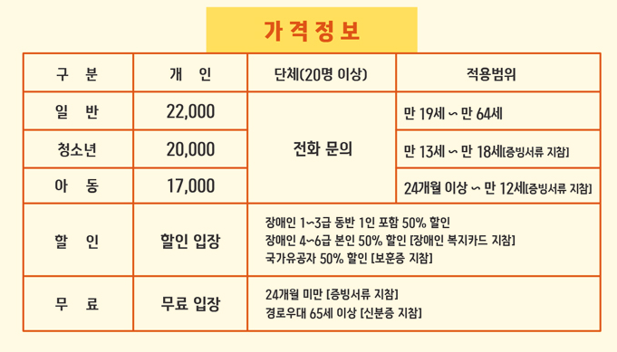※ 할인은 일반권에만 적용됩니다. 학생 요금은 정가만 운영되니 참고하세요.