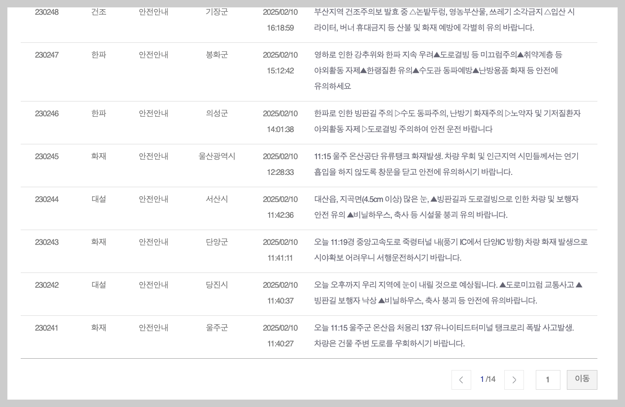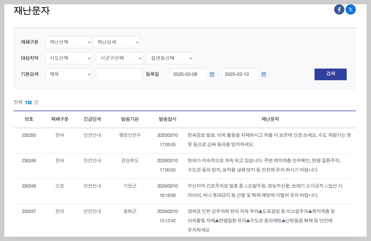 - 최근 1년간의 재난문자 데이터 확인 가능