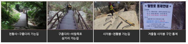 | 겨울철에도 등산 가능한가요? | 가능하지만, 입산 시간이 제한되므로 반드시 국립공원 공지사항을 확인 후 계획을 세워야 합니다. |