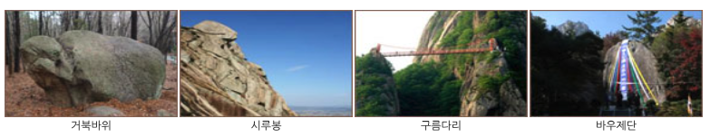 | 구름다리 코스 | 약 3.5km | 약 3시간 | 중 | 구름다리를 건너는 독특한 경험, 가족 단위 추천 |