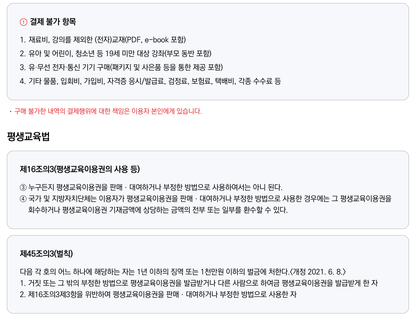 | 사용 가능 항목 | 수강료, 강의 관련 교재비 |