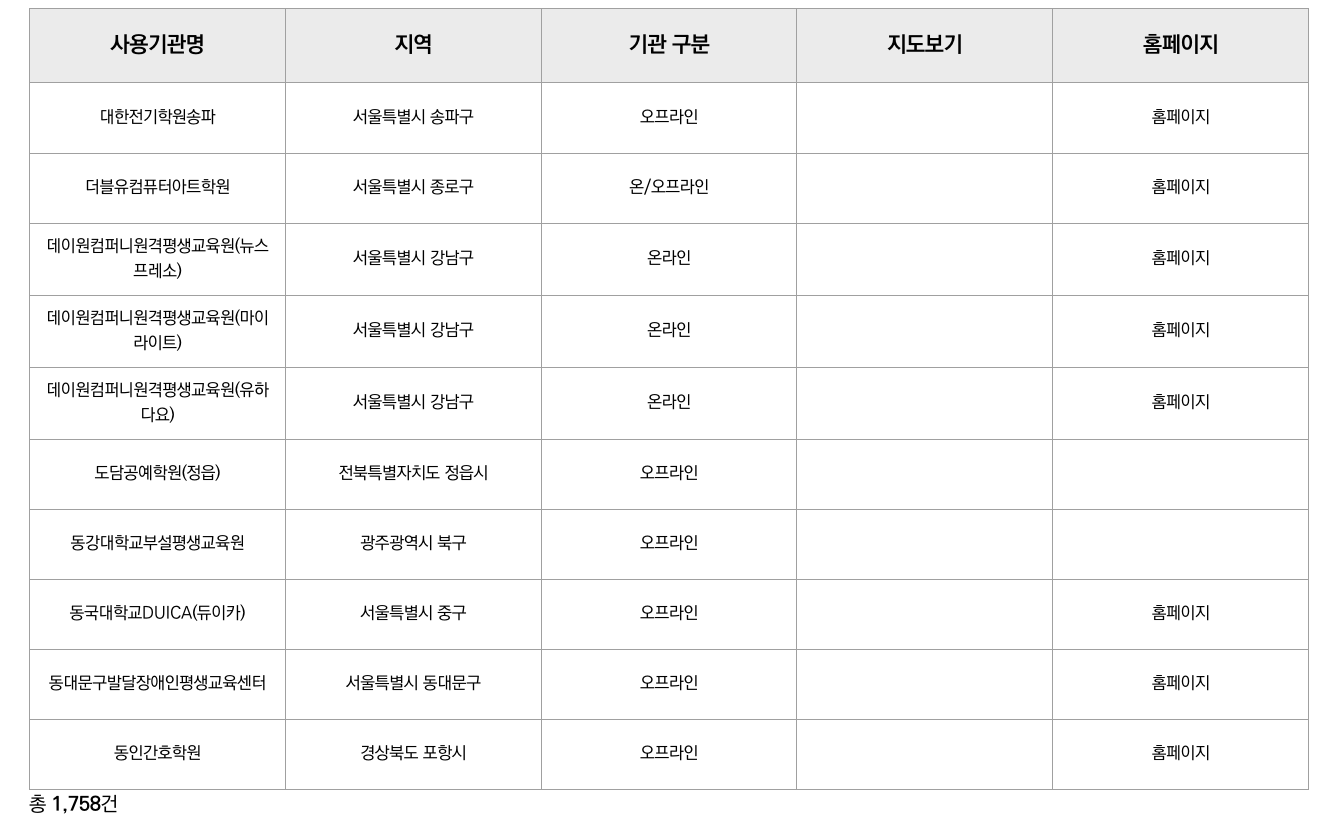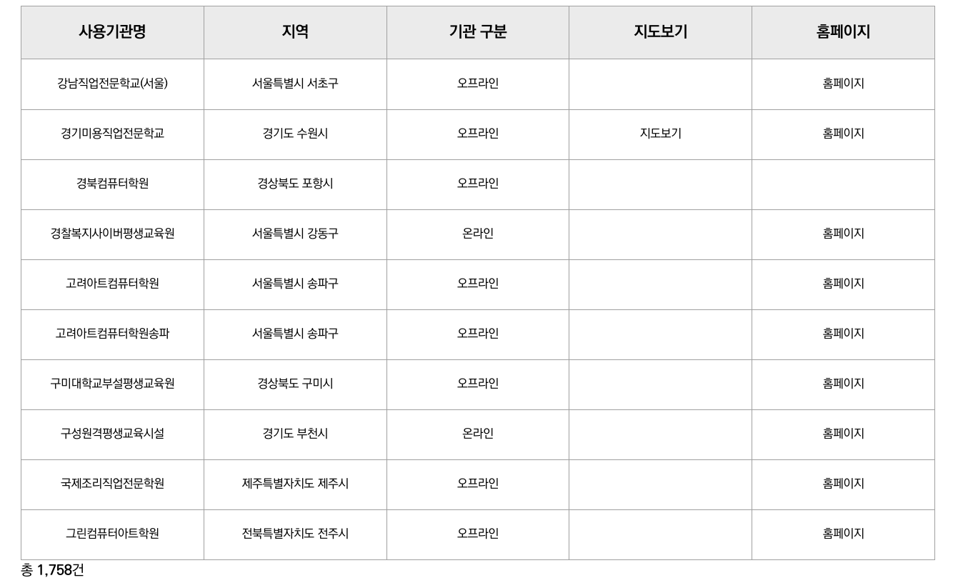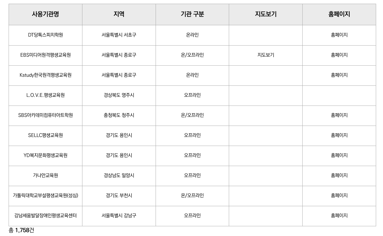 - 수강기관은 계속 추가 중이라서 정기적으로 확인하는 게 좋아요.