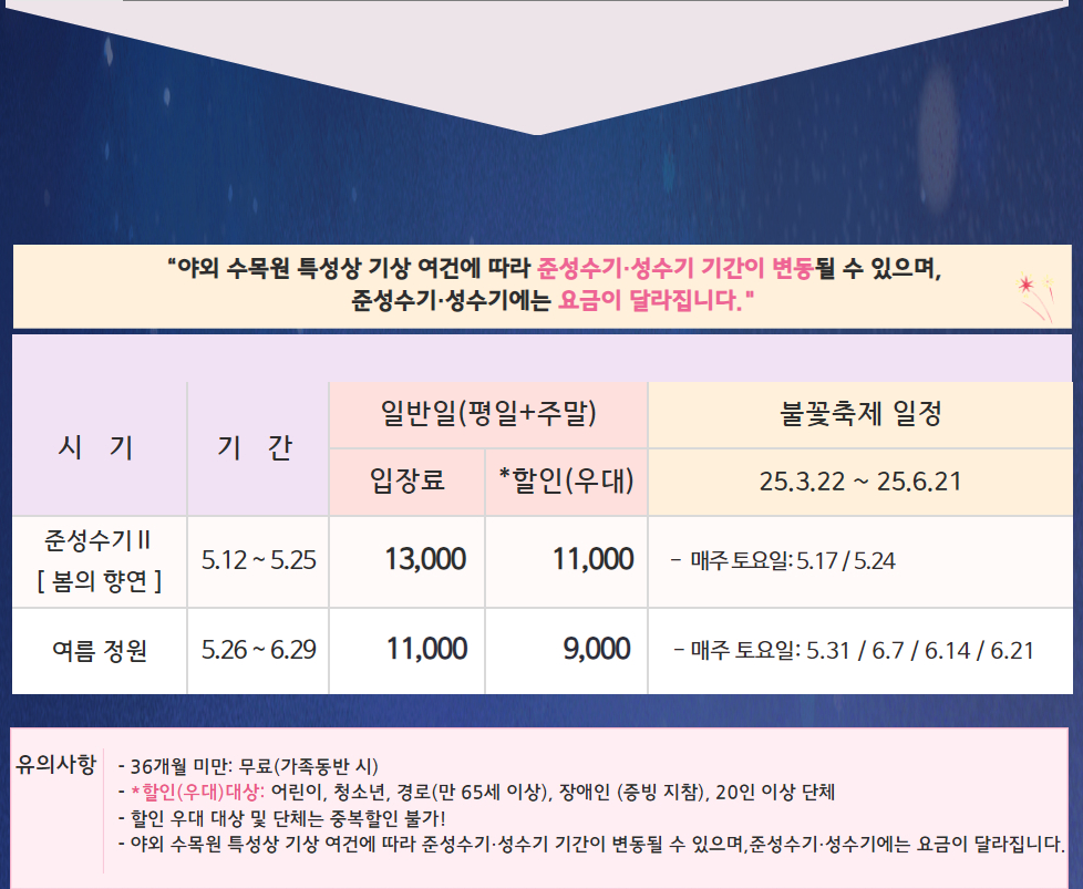 3. 피나클랜드 불꽃축제 입장 요금 및 좌석 안내