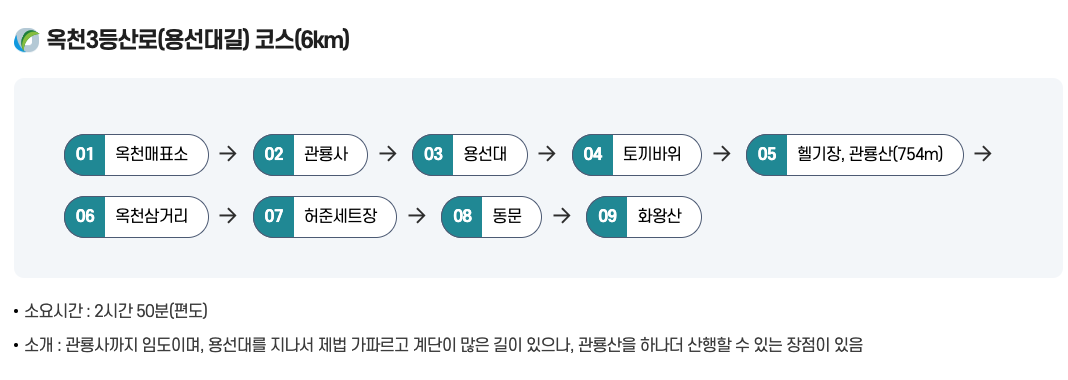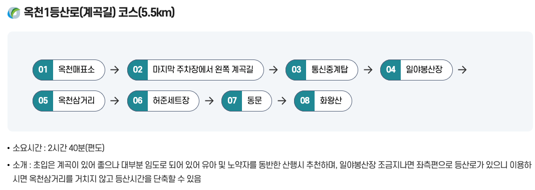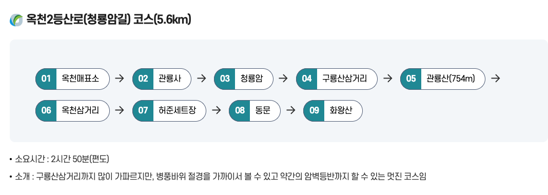 | 조용한 산행 | 옥천 코스 | 한적한 숲길, 힐링에 적합 |