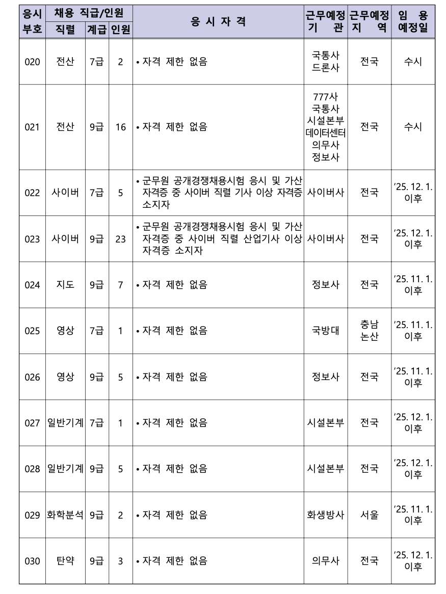 - 접수 방법: 국방부 군무원채용관리 사이트에서 인터넷 접수