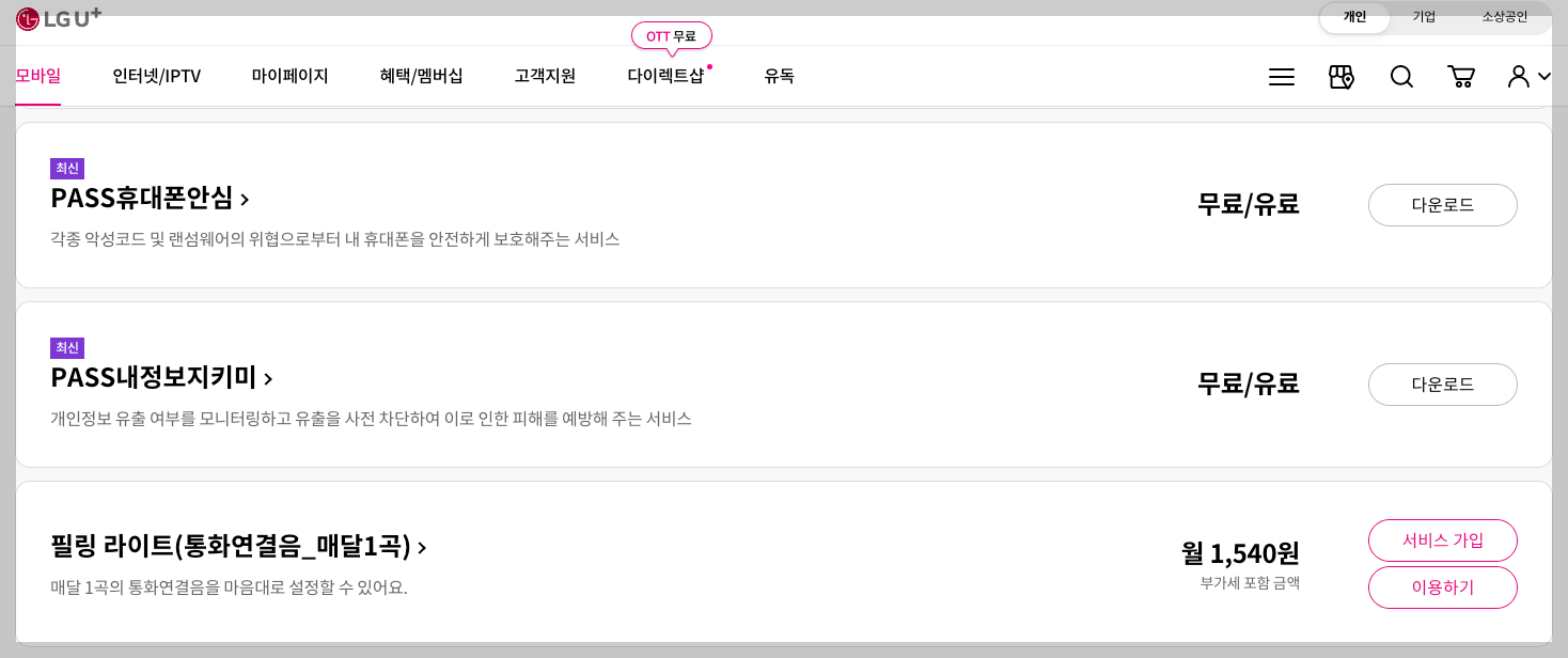 | 서비스 해지는 어떻게 하나요? | LG유플러스 홈페이지에서 부가서비스 관리 메뉴로 들어가 해지하실 수 있습니다. 또는 고객센터(114)로 문의하셔도 됩니다. |