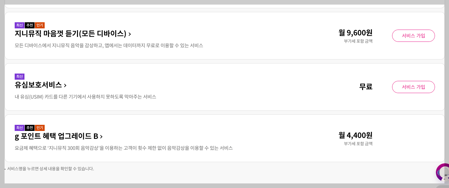 | 2단계 | 마이페이지 → 가입/사용현황 → 부가서비스 변경 |
