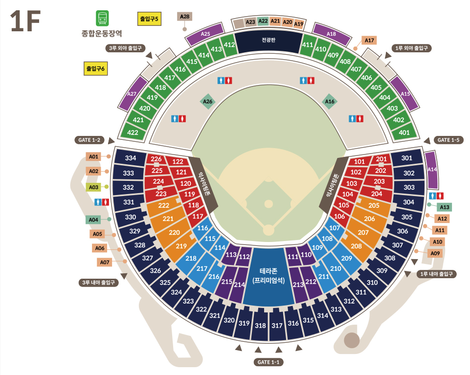 | 사진이나 영상을 찍기 좋은 자리는? | 테이블석이나 프리미엄석은 시야가 트여 있고 망이 없거나 적어 촬영에 유리합니다. |