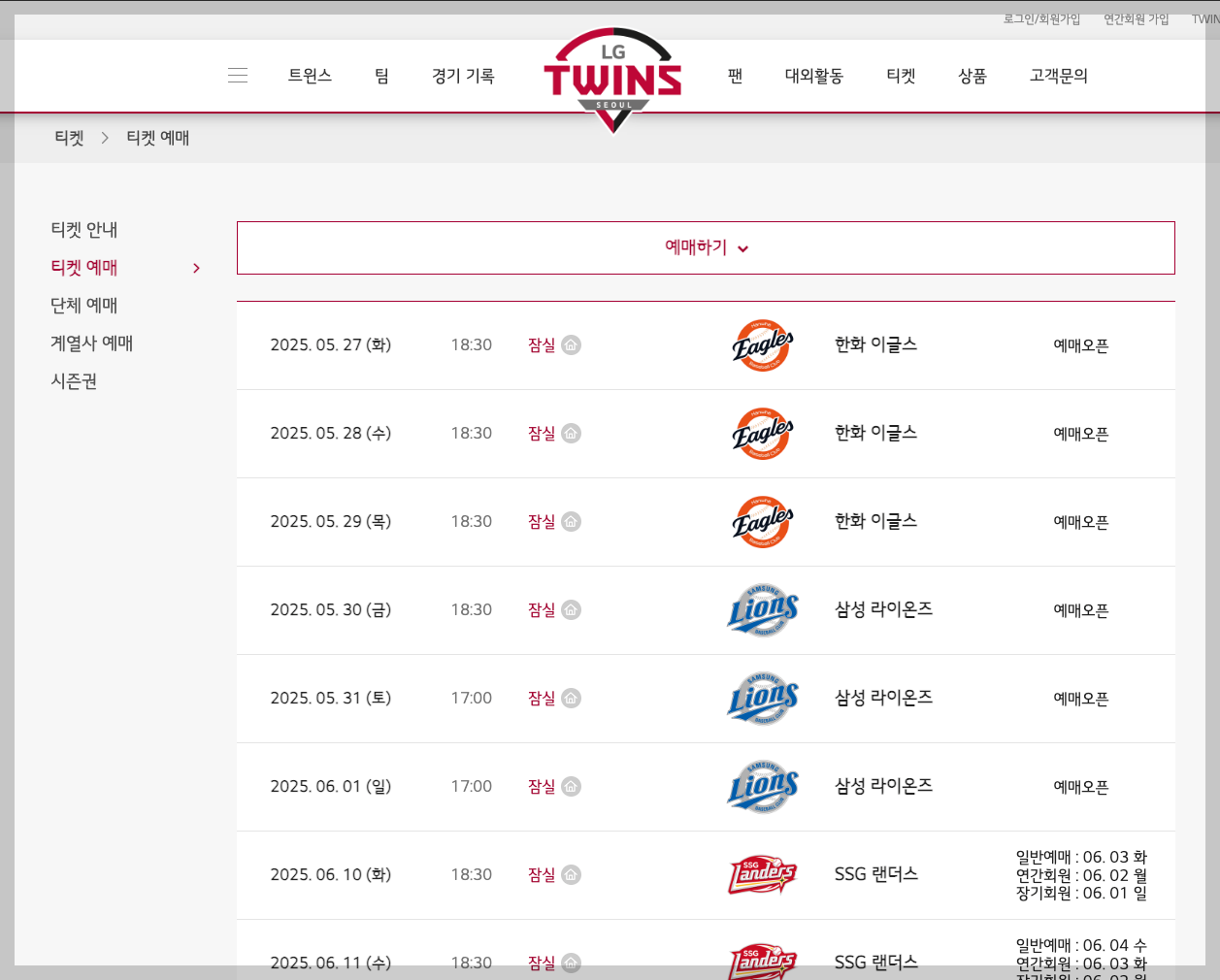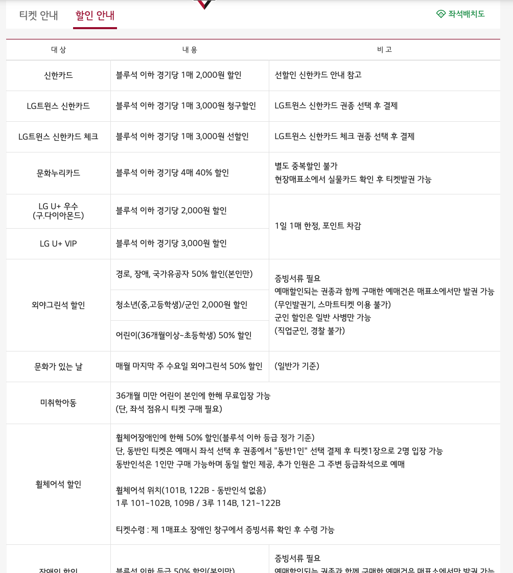 | 예매 가능한 채널 | LG 트윈스 공식 홈페이지, 티켓링크 |