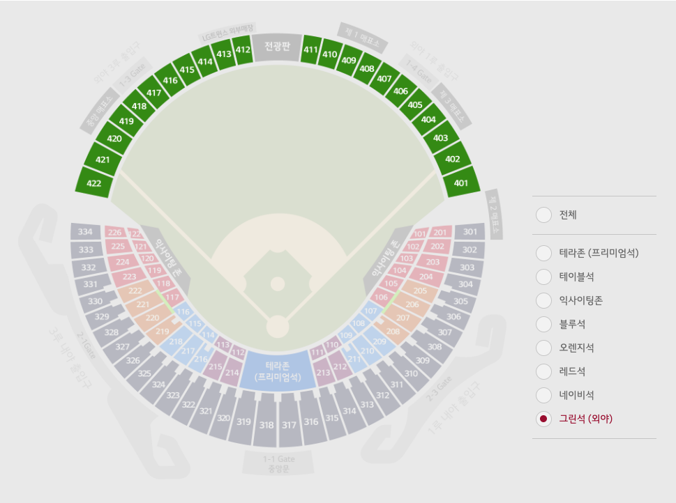 | 외야 그린석 | 9,000원 | 10,000원 | 무료 입장 (초등 이하) |
